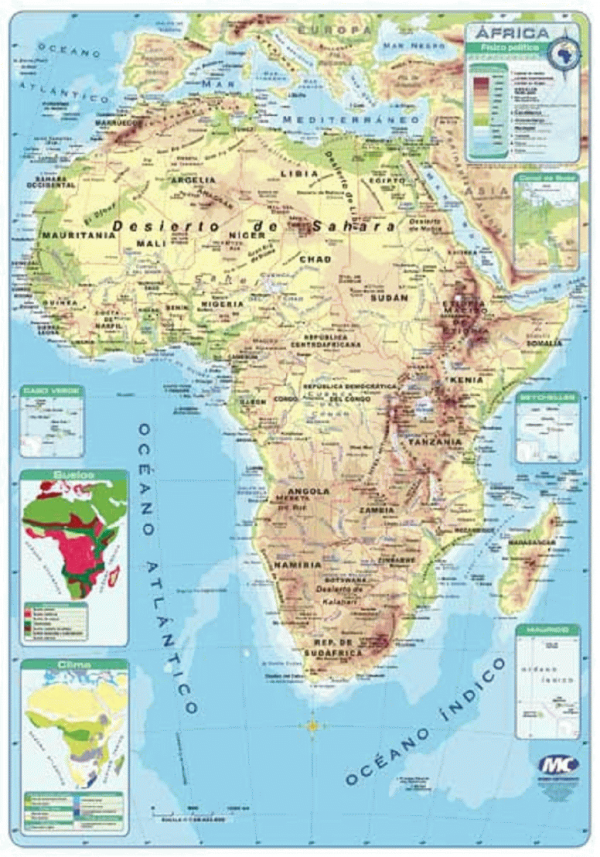 Mapa físico político continente Africano